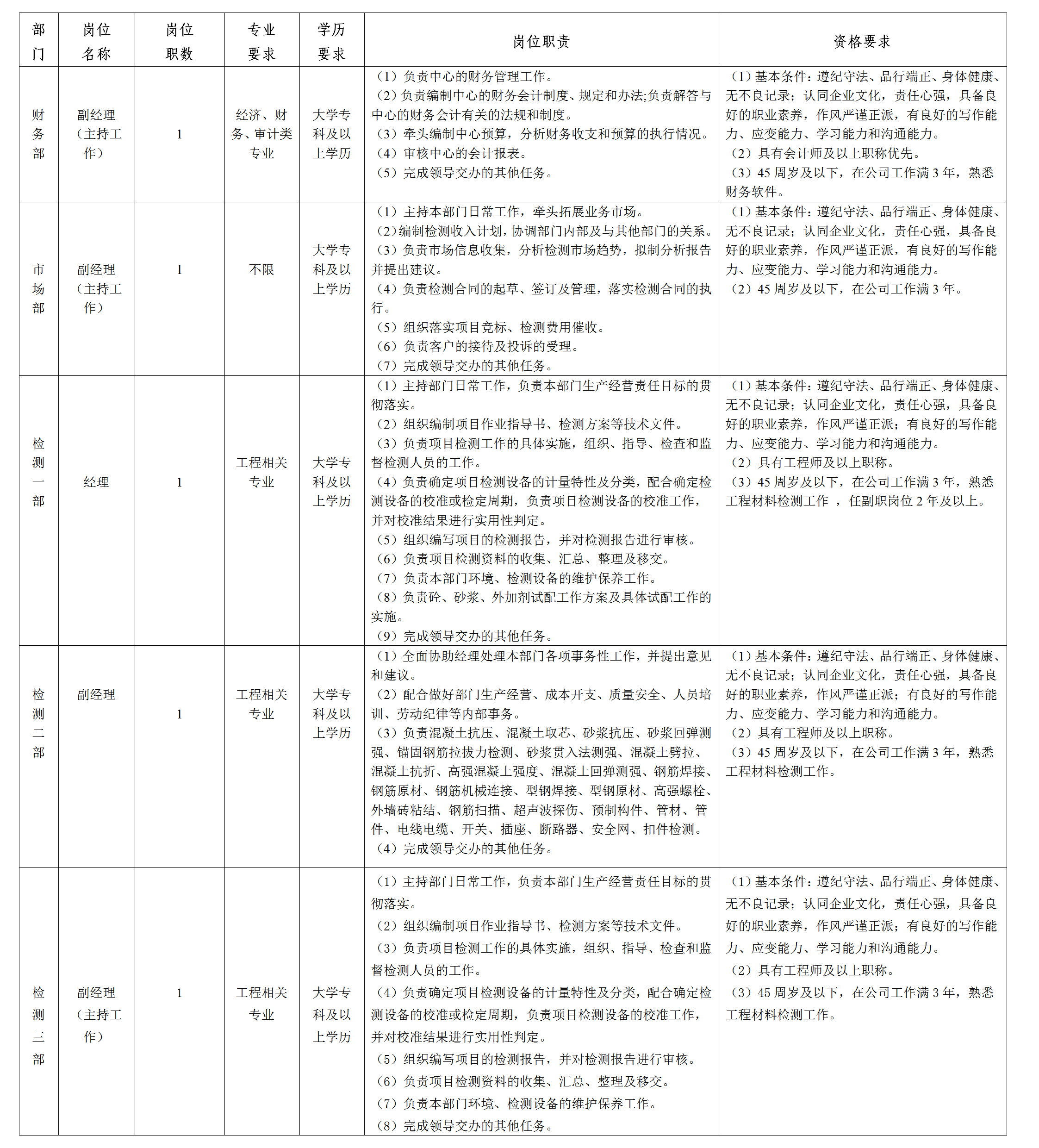 《绵阳市建设工程质量检测中心有限责任公司关于部门经理、副经理岗位内部竞聘的公告》于2026年1月4日向内部公开发布,因竞聘岗位与通过资格审查的人数未达比例,经公司研究,决定延长报名时间至2026年2月5日,具体公告如下: