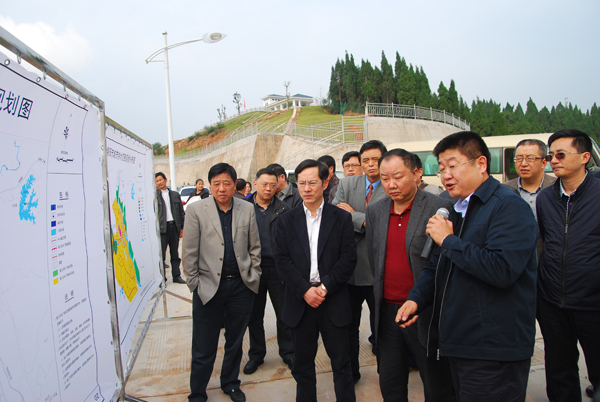 张世虎一行先后深入绵阳市燕儿河水库、绵阳水务集团三水厂取水泵站、三水厂厂区和水质检测中心视察,详细了解了绵阳城区饮用水管理、安全保障和第二水源建设等情况。在燕儿河水库大坝,叶建宏代表绵阳水务集团向张世虎一行详细介绍了目前燕儿河水库第二水源地建设相关工作,对目前绵阳市城区供水管网和各供水企业供水片区进行了介绍。在三水厂取水泵站,欧飞跃代表介绍了水质在线监测仪器和在线水质毒性分析仪的相关情况。在三水厂模型室,叶建宏详细介绍了三水厂供水生产情况和目前绵阳市供水管网建设、改造和管网材质等情况。在水质检测中心,该部门负责人介绍了水质检测设备和水质检测应急体系建设的相关情况。