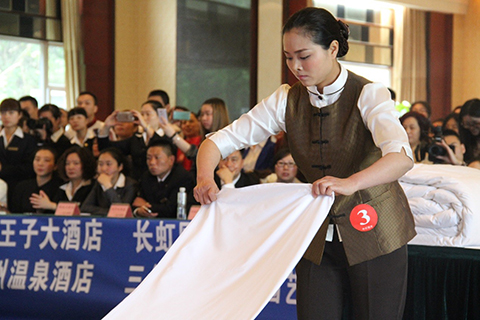 (绵阳市第二届旅游饭店服务技能大赛中式铺床一等奖何丽)