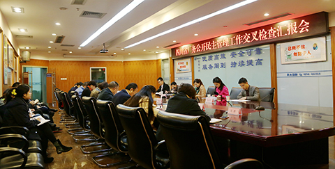 为认真贯彻落实《中共中央国务院关于构建和谐劳动关系的意见》、《中共中央关于加强社会主义协商民主建设的意见》以及四川省厂务公开民主管理现场推进会精神,学习交流各地先进经验和典型做法,充分发挥厂务公开民主管理在促进劳动关系和谐稳定中的重要作用,四川省总工会组织全省各市、州开展厂务公开民主管理工作交叉检查。11月24日,由乐山市总工会、遂宁市总工会组成的四川省厂务公开民主管理工作第四交叉检查组深入绵阳市水务集团开展厂务公开民主管理工作检查。