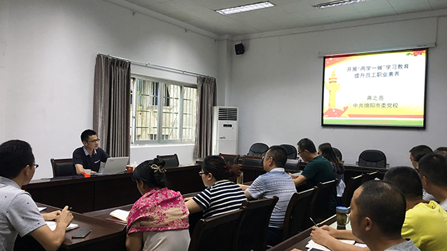 根据 “两学一做”学习教育工作安排,7月21日下午,西津物流和项目管理公司邀请了绵阳市委党校党史党建办公室副主任、市委“两学一做”讲师团第五组组长蒋之亮副教授在集团第二办公区二楼会议室作了题为《开展“两学一做”学习教育,提升员工职业素养》的专题讲座。两家公司全体党员及入党积极分子参加了学习。