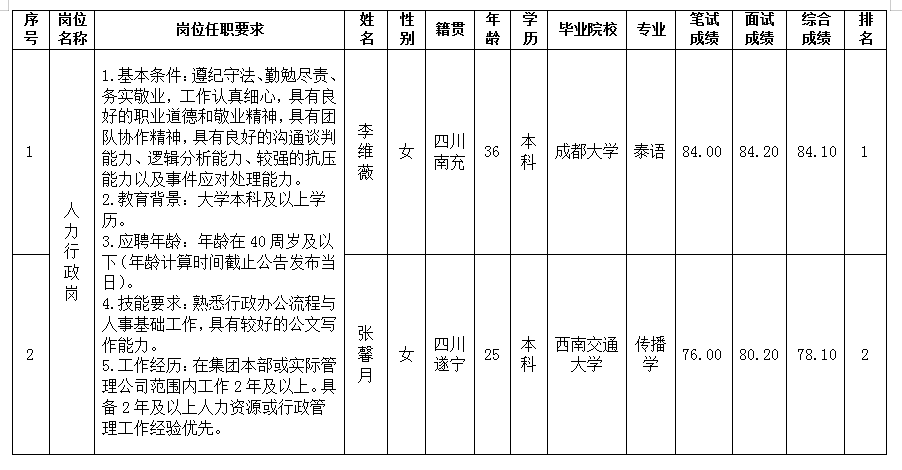 根据绵阳绵投产业投资有限公司发布的招聘公告及招聘相关规定,经笔试、面试等程序,现将笔试、面试成绩予以公示。