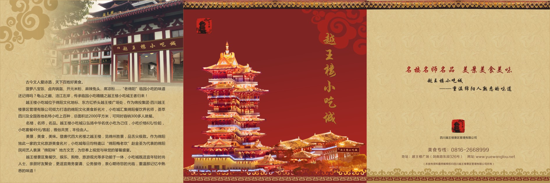 越王楼景区集餐饮、娱乐、购物、旅游观光等多功能于一体,小吃城既适宜年轻时尚人士、亲朋好友聚会,更适宜商务宴请、公务接待,衷心期待您的光临,重温那记忆中熟悉的味道!
