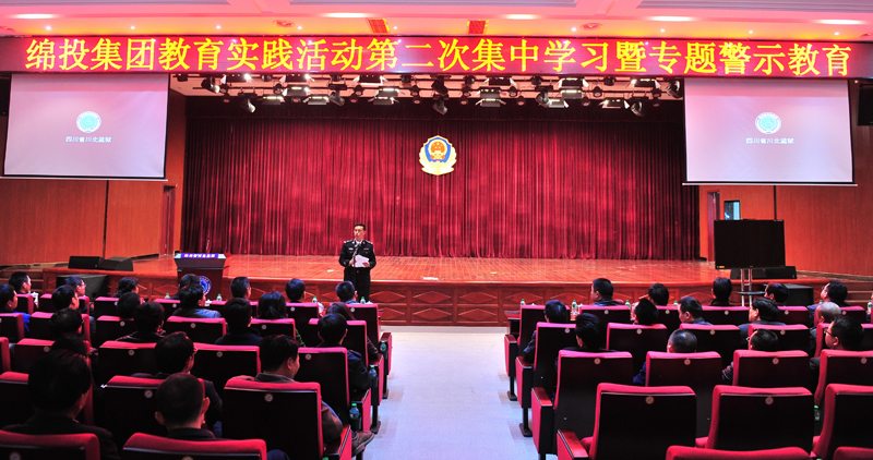 为确保党的群众路线教育实践活动扎实深入开展,根据市委党的群众路线教育实践活动领导小组办公室要求及绵投集团纪委年度工作安排,3月21日下午,绵投集团举行教育实践活动第二次集中学习暨专题警示教育活动,组织党员领导干部和职工前往四川省川北监狱接受警示教育。绵投集团党委党的群众路线教育实践活动领导小组成员,所属各公司班子成员及绵投集团各中心、事业部中层管理人员和全体党员、重要岗位人员共110余人参加活动。