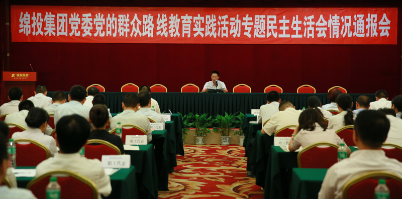 8月14日下午,绵投集团党委召开党的群众路线教育实践活动专题民主生活会情况通报会,绵投集团党委书记陈建强代表绵投集团党委作情况通报。绵投集团全体班子成员,各部门