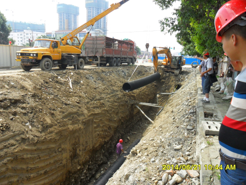 绵州大道河水管道工程是我市2014年重点市政基础设施建设项目,项目于2014年5月开工,由于该工程位于经开区绵州大道的慢车道下,对相关区域交通安全和周边环境影响较大,市委市政府要求绵阳水务集团倒排工期、顺排工序、在确保质量和安全的情况下限时完工。