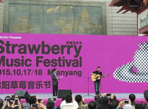 4月22日,由市委宣传部、市旅游局、市文广新局、市文联共同主办的“2015绵阳旅游主题文化年暨草莓音乐节”在越王楼景区南广场正式启动,民谣歌曲《董小姐》、《斑马,斑马》的原唱歌手宋冬野现场放歌,带给现场观众美妙的音乐春之旅。
