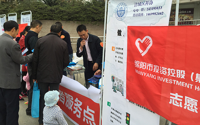 3月5日,绵投创建办、绵投团委组织集团本部、所属水务、驾校、科技馆等单位的志愿者在绵阳市科技馆景区开展了学雷锋纪念日志愿者科普宣传服务活动,向市民与外地游人义务普及健康、科技、自来水咨询、交通安全等知识,并向市民与外地游人免费发放健康、科技书籍以及自来水服务、交通安全知识材料。