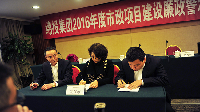 (绵投集团与各项目责任单位牵头领导、具体负责人签订《工程建设项目廉政承诺书》)