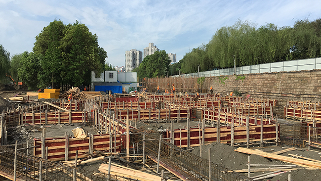 在配套用房建设区域,几十名工人有的忙着桩基作业,有的正在进行支木和钢筋绑扎。配套用房作业被分为7个区域,各区域同步施工。目前,1至5号区域桩基施工已经完成,已经开始进行钢筋绑扎和地梁浇筑。6、7号区域正在进行土石方开挖。建成后,配套用房主要是用于码头公厕、商业用房等使用,将与码头建设同步于6月底完工。