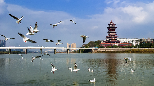精美的阁楼建筑、厚重的历史文化印记,引得艺术家们啧啧称道。“以前通过《越王楼歌》和网上图片了解到一些越王楼的情况,但一直没有机会亲身登临,这次亲眼感受,实在是太兴奋了。”美术家周先生赞叹道,不愧是唐代四大名楼,气势恢宏,文化底蕴也十分浓厚。