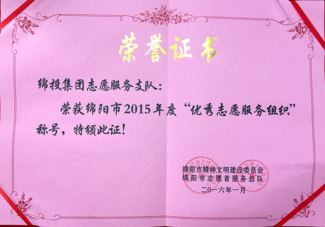 绵投集团志愿服务支队荣获“优秀志愿服务组织”荣誉称号