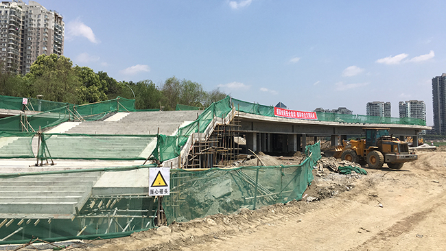 在项目施工作业场地,材料堆砌区、临时办公区被严格区分开,工地上施工车辆来来往往十分忙碌。目前,挡墙的石材铺装已经完成200米,餐饮码头水下挡墙已经完成施工,整个码头挡墙计划6月12日前全部完成。在房建方面,1—5号楼已经全部完工,6、7号楼按计划将在6月8日前完成主体。目前项目亮化方案已经确认,绿化方案正在优化完善,下一步项目工作重点将集中在梯部工程和绿化亮化等景观工程。