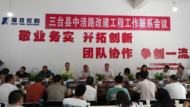 6月14日下午,三台县交通局在集团所属嘉来建工三台中涪路项目部组织召开了项目工作联系会议。项目跟踪审计单位、设计单位、监理单位及相关乡镇参加了会议。