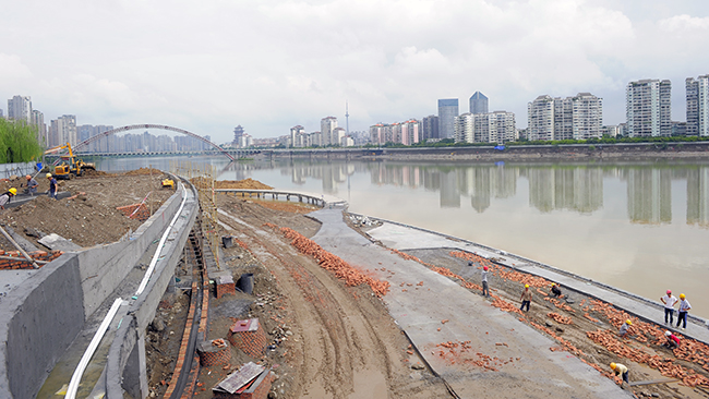 目前,绵阳港三江湖码头建设项目已完成全部房建工程主体结构,正在全面推进地面铺装工程,涪江三桥、房建屋面及南山大桥处绿化区域植物栽植。