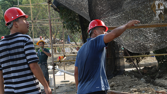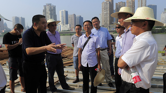 (高温下的绵阳港三江湖码头建设项目现场管理人员)