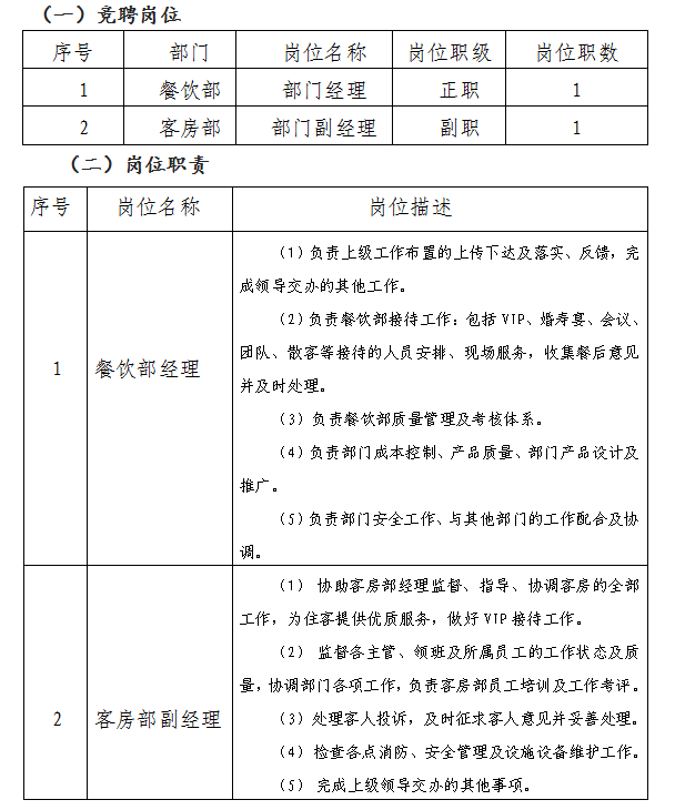 (三)招聘人数:运营管理岗1人、投资管理岗1人。