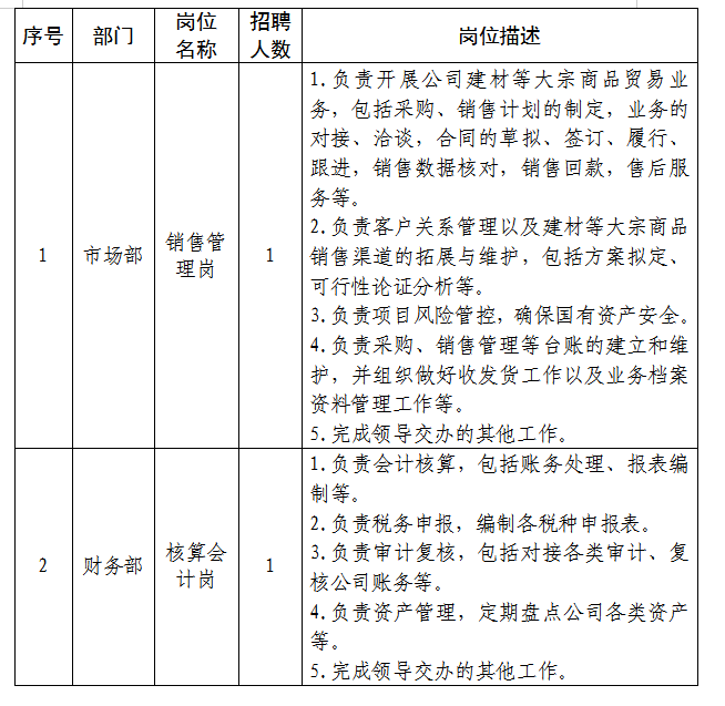 (三)招聘人数:运营管理岗1人、投资管理岗1人。
